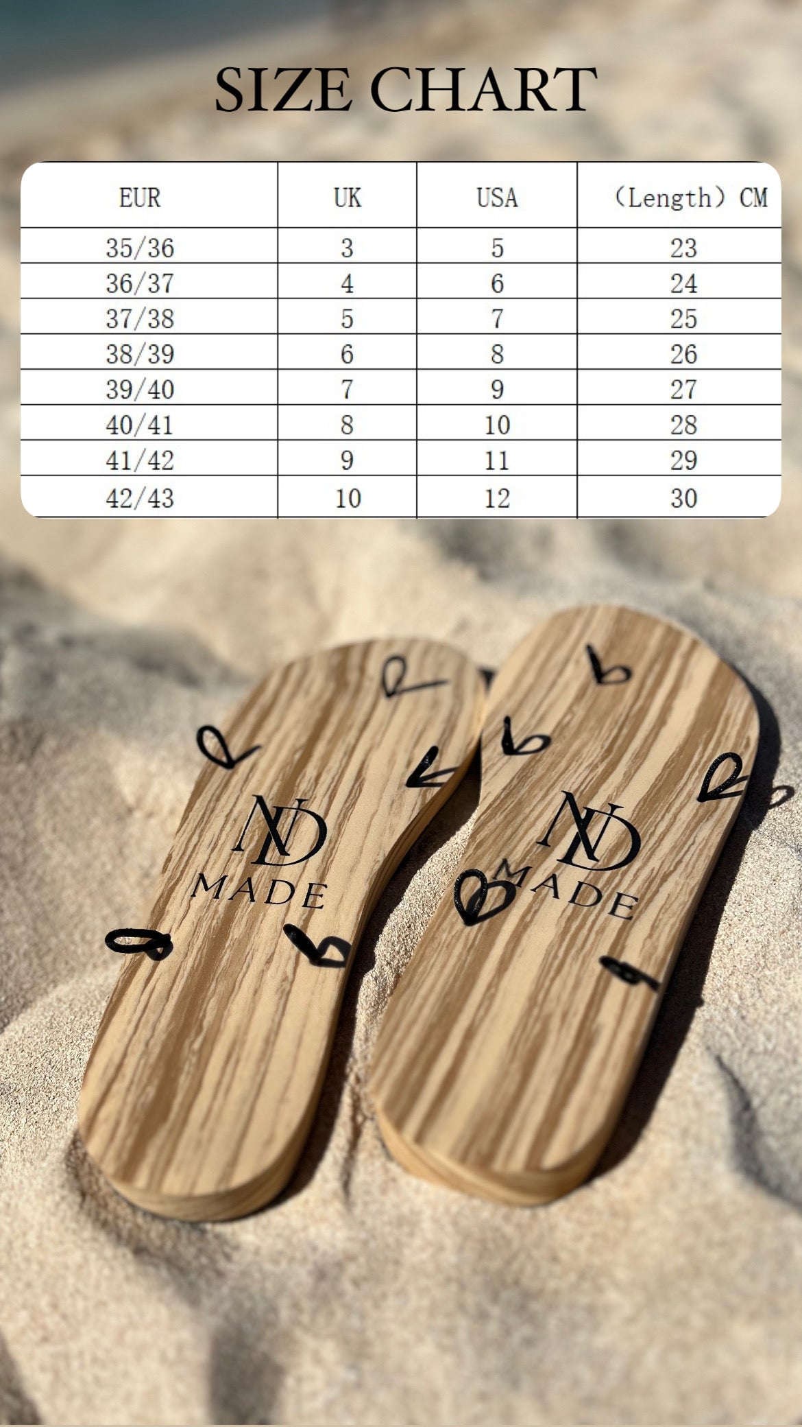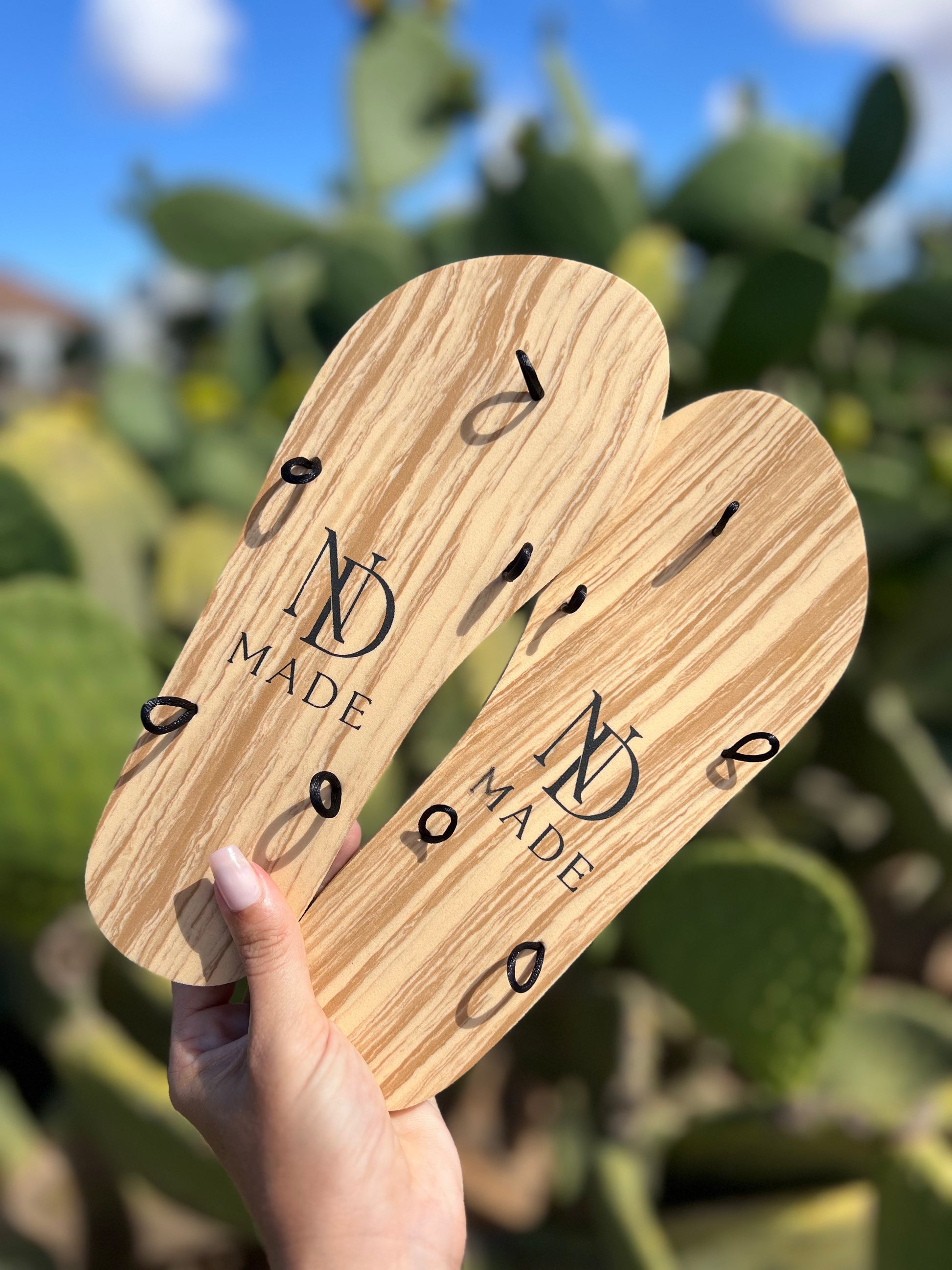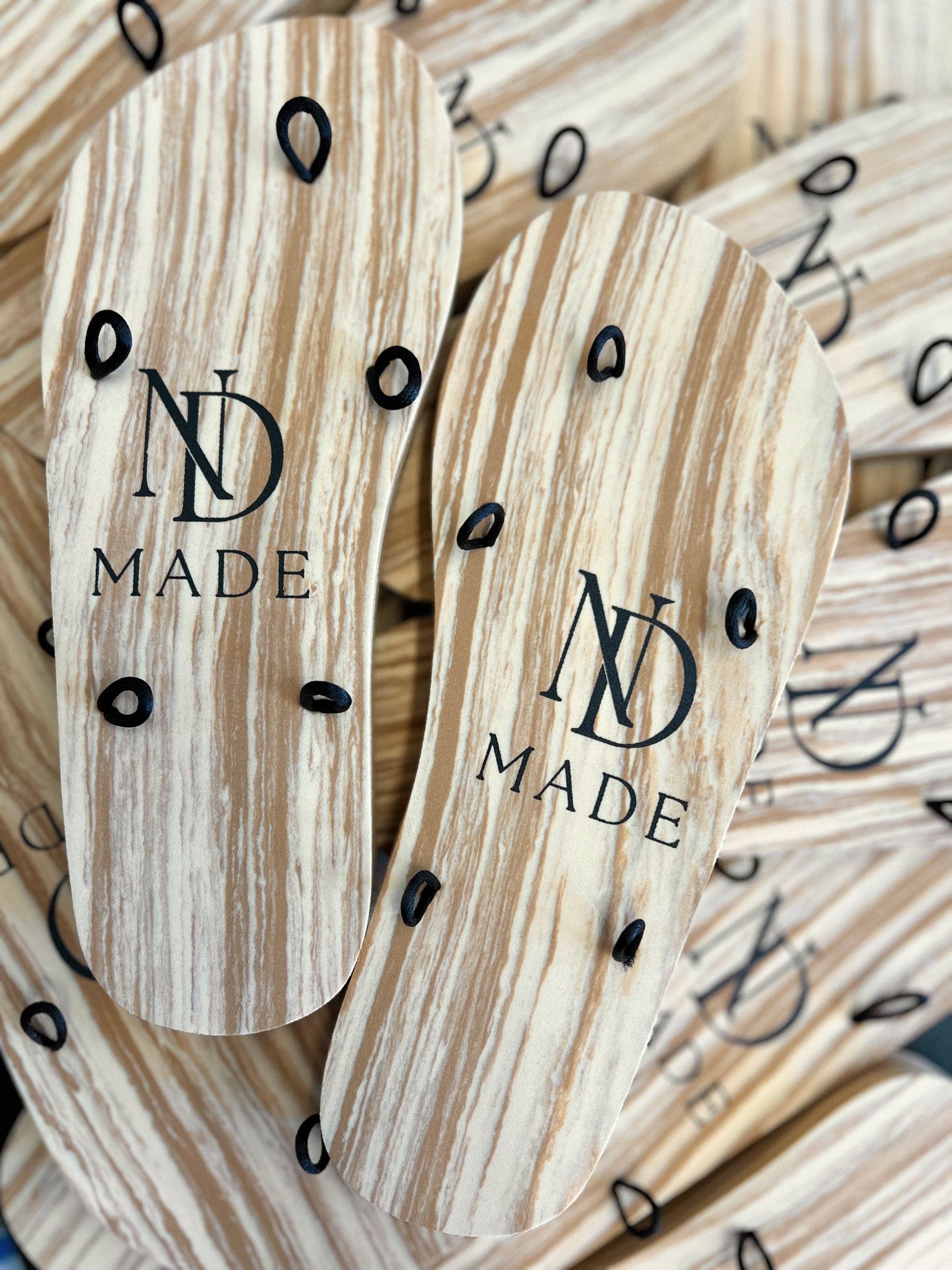 Quility was our number one priority! The NDMADE sandal base made from super soft EVA Foam material(Feels like memory foam) which gives you unbelievable comfort and durability! NDMADE Sandals bring countless possibilities ,each pair of laces can give so many different looks! These beautiful sandals makes your travelling life so much easier ,because its super light (ONLY 200g), takes up little space in your suitcase and you can put several different laces! You can be elegant and sporty at the same time ,both on vacation and in every day life! The base has a raised heel ,with a height of 1cm to at the toes and 2,2cm at the heel!